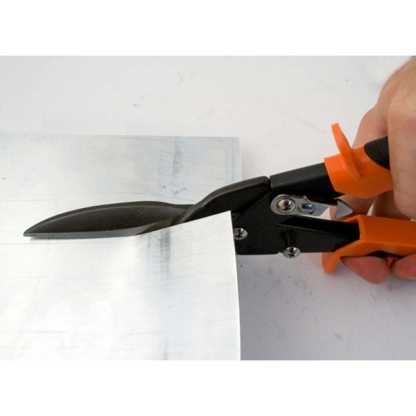 Cisaille à tôle type « Aviation » Mâchoire traitée au chrome molybdène Ressort de rappel très puissant et résistant Double garde protégeant la main de l’utilisateur Cliquet d’ouverture automatique (160 dents) 59-62 HRC