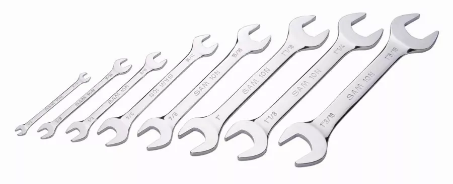 Jeu de 8 clés à fourche forgées en acier au chrome vanadium.