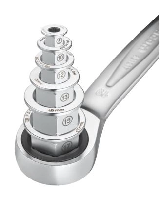 - La clé extra-plate est 3 fois moins haute qu’un système traditionnel cliquet + douille.