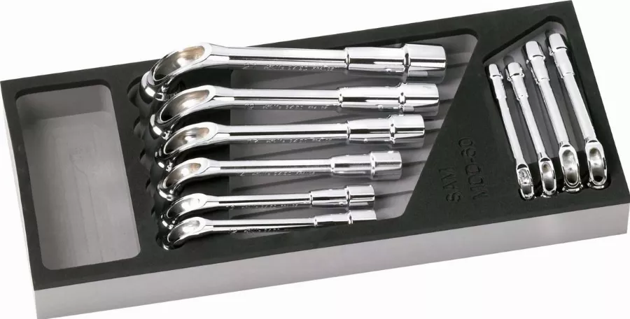 Jeu de 10 clés à pipe 6×6 pans débouchées polies 6×6 pans livrées en MODULOSAM mousse.
