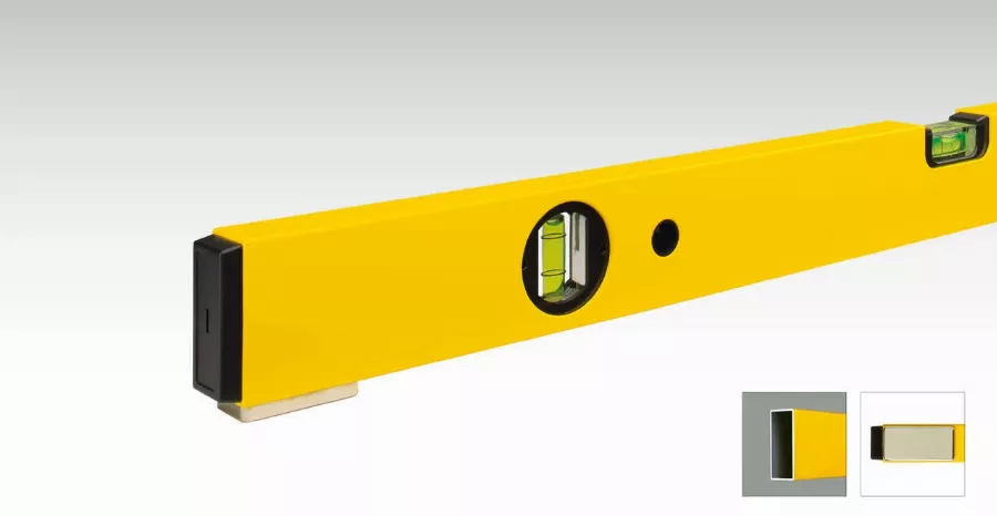 - Niveau à bulle long à profilé rectangulaire en aluminium avec semelle constituée de deux séparateurs fixes.